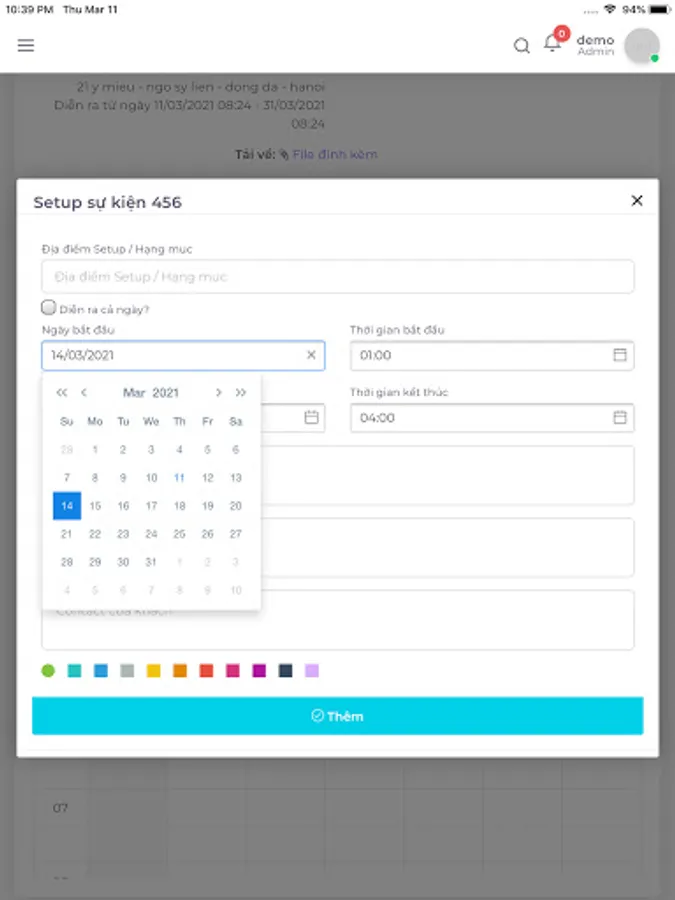 - Add, edit, delete events, manage event information