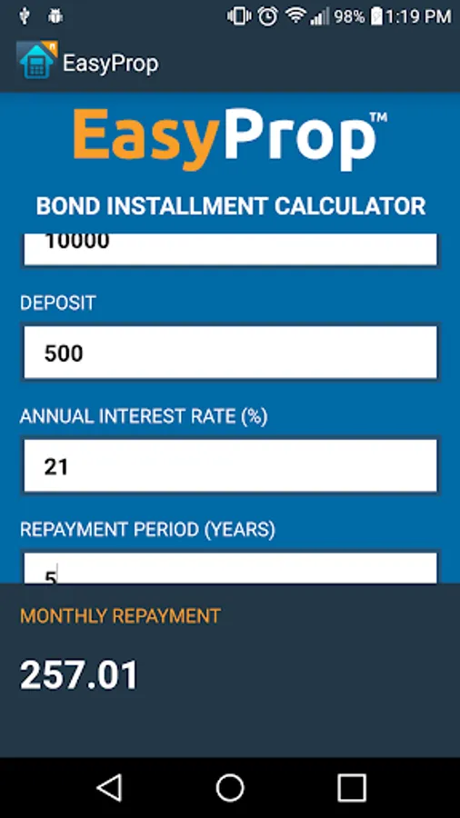 Currently there is a bond repayment calculator to calculate the payments on a bond