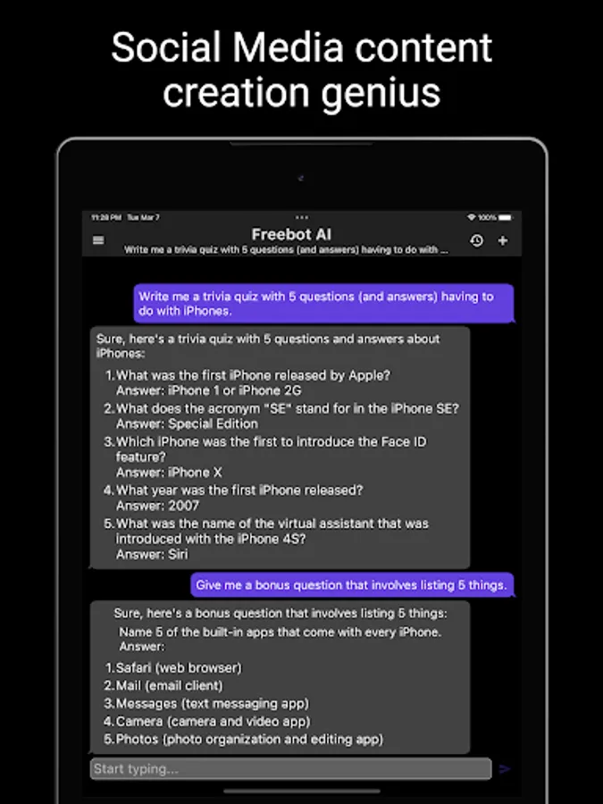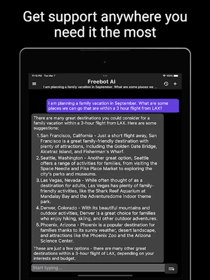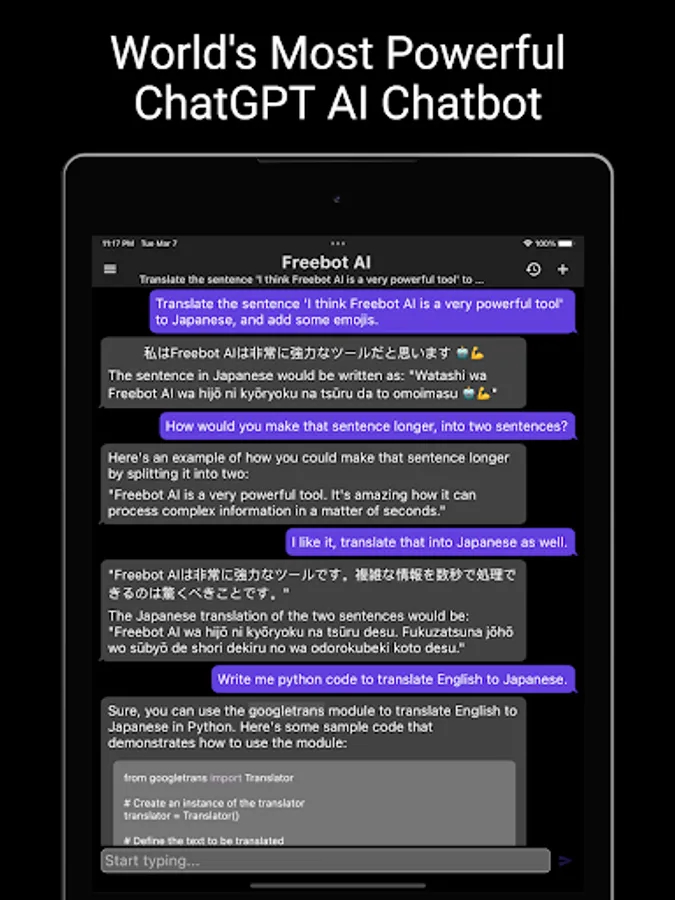 Freebot AI Chat offers free daily access to the world's most powerful AI Language Model, ChatGPT & GPT-3.5.