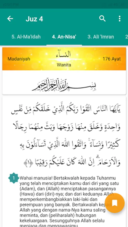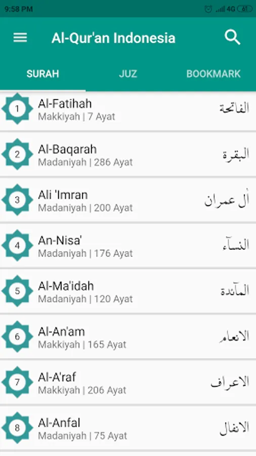 This application is a digital version of the Al-Qur'an application that refers to the Indonesian Standard Al-Qur'an Mushaf (MSI) issued by the Ministry of Religion of the Republic of Indonesia, the writing standard uses the usmani rasm, which follows the opinion of Shaykh Abu Amr Ad-Dani (371- 444 H) and Abu Dawud Sulaiman ibn an-Najah (413- 496 H).