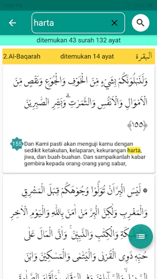 -Menu search for the content of surah / verse in translation or Arabic