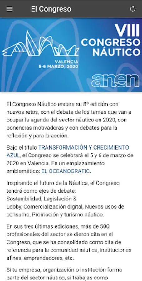 The VIII NAUTICAL CONGRESS, organized by ANEN, is held on March 5 and 6 in Valencia, at the OCEANOGRAFIC (Carrer d & # 39; Eduardo Primo Yúfera, 1B, 46013 Valencia), integrated into the cultural complex of the City of Las Arts and Sciences.