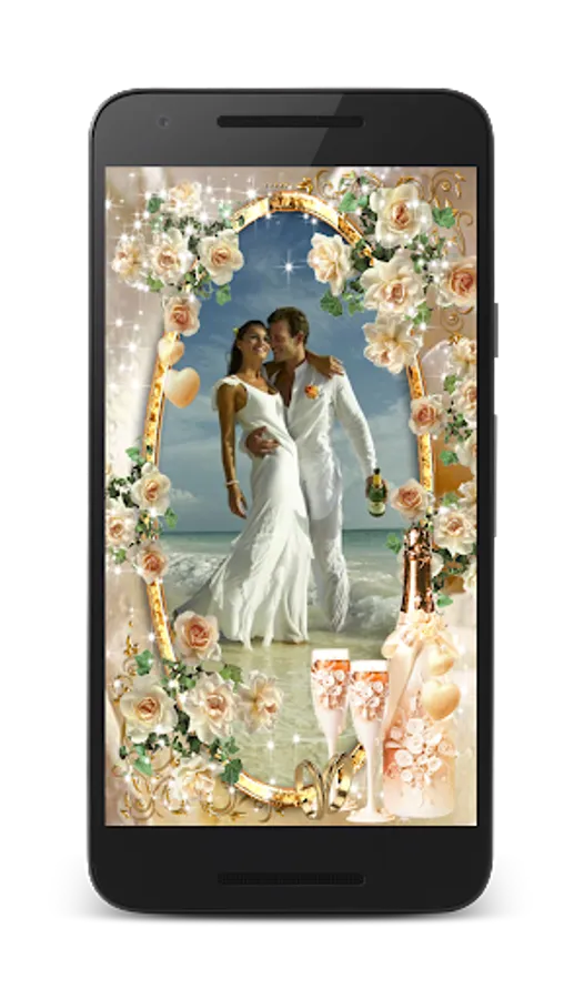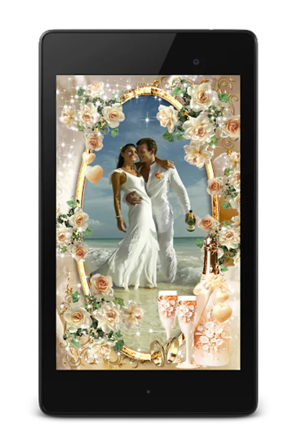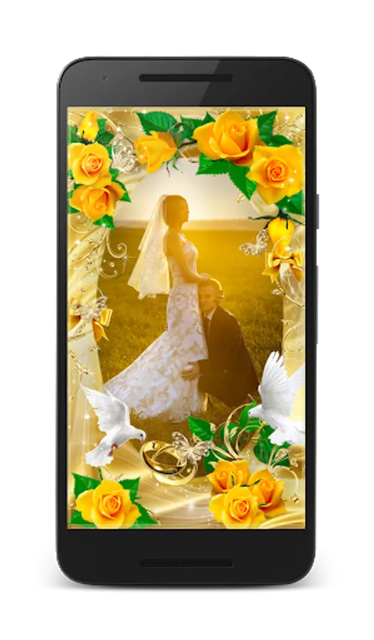 Application contains a brilliant collection of high quality magic wedding photo frames, which you can use to make your wedding pictures unforgettable. Most frames are designed in luxury and romantic style with sincere greetings and warmest regards from our team. Choose the bridal frame you like and show the photo to your family. Also you can share it with friends in social media like Facebook, Instagram or Twitter.