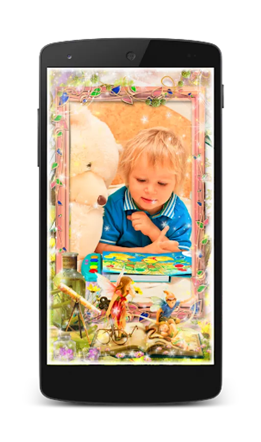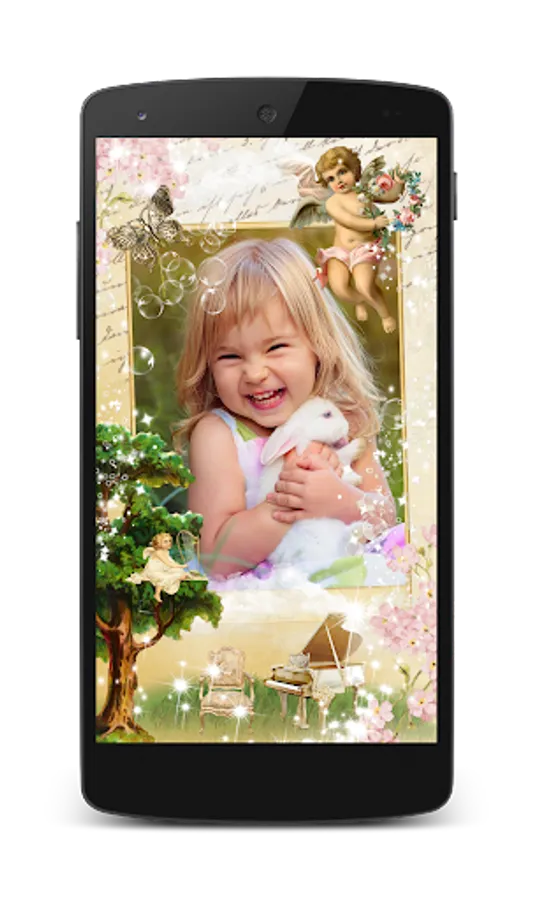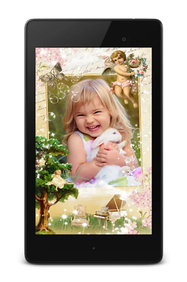 Application contains a magic collection of high quality kids photo frames, which you can use to make your children photos unforgettable. Most frames are designed in magic and angels style. Choose the kids frame you like and apply to the photo of your child. Also you can share it with your family or friends in social media like Facebook, Instagram or Twitter.