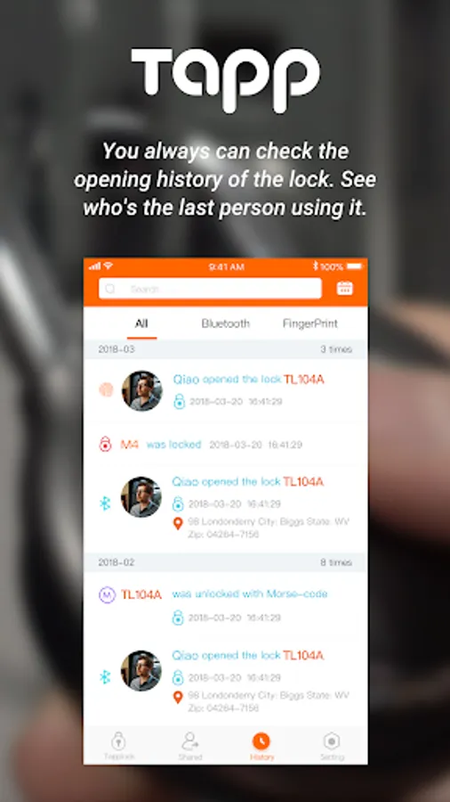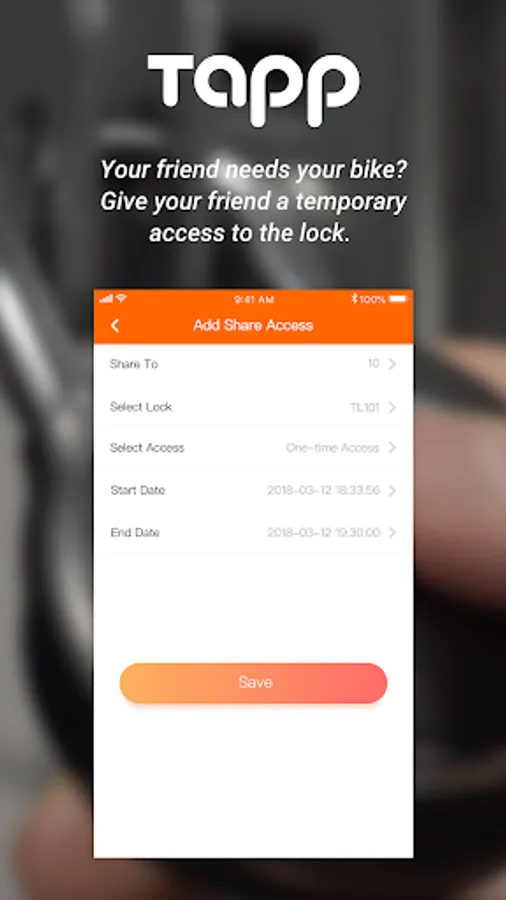 - Need to give access to your friend/family? No problem! Give temporary, permanent or one-time Bluetooth Shared Access unlocking all in the Tapplock app