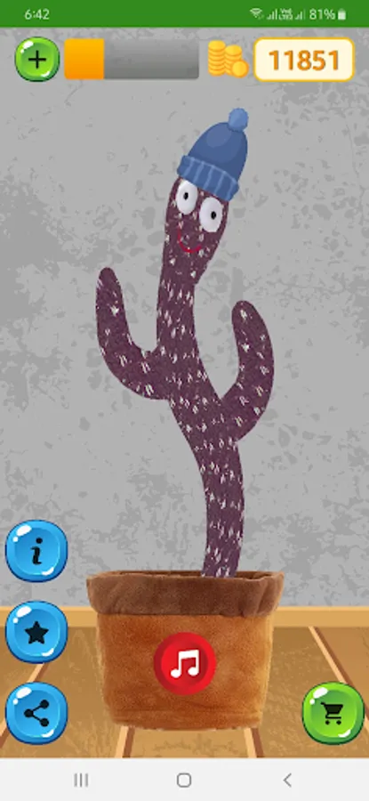 Play with your funny dancing cactus; Repeat your sound in a funny way and dress it with the pretty hats, scarves and skins.