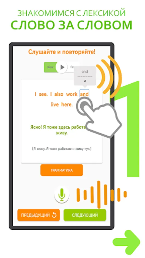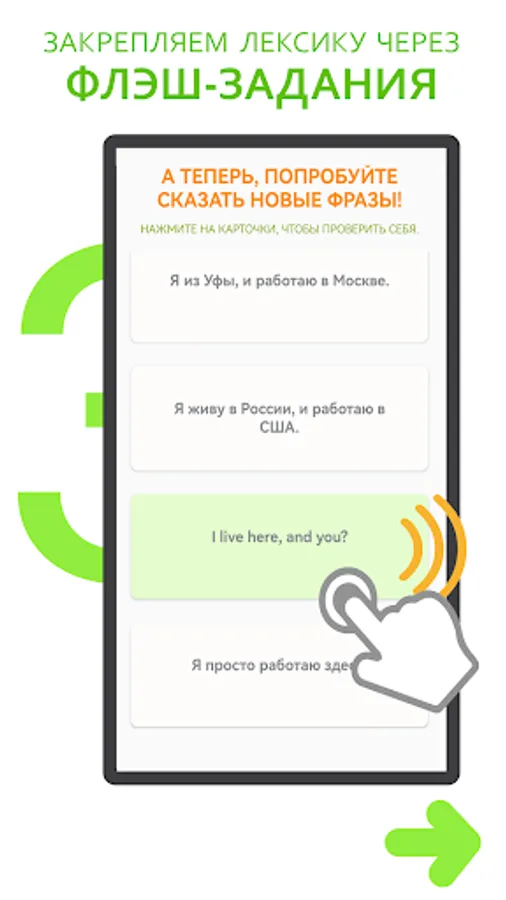 Таким образом, основное отличие от остальных языковых приложений в том, что тренажёр не только предлагает полезный материал, но и вместе с пользователем результативно прокачивает его до РЕЧЕВОГО уровня на долгосрочной основе.