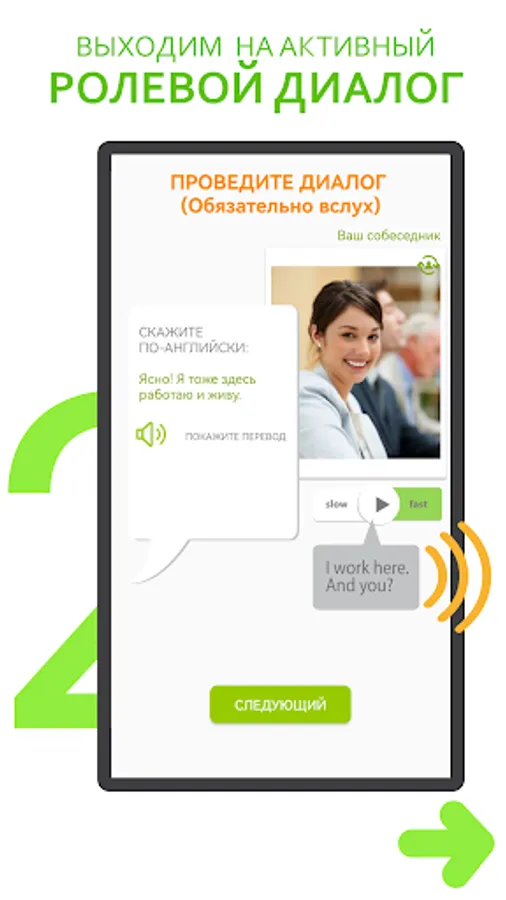 Я ГОВОРЮ - это законченный курс онлайн-школы DIALOGO разговорного английского языка со встроенным речевым тренажёром-репетитором. Его фокус – постановка РЕЧИ. Его особенность - активная языковая практика не требующая наличия партнёра или репетитора! Эффект гарантируется за 2-4 месяца самостоятельных занятий по 15-20 минут в день.