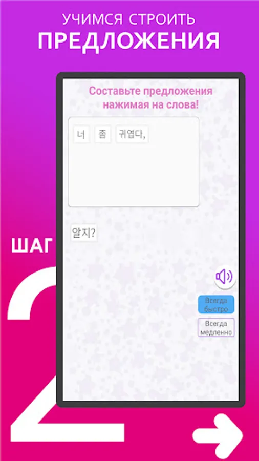 The main difference from other language applications is that the simulator not only offers useful material, but together with the user effectively pumps it up to the SPEECH level with the help of special training exercises - from passive to active knowledge of Korean, bringing knowledge to the level of automatism.