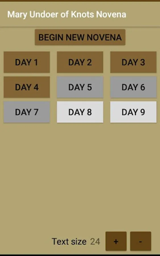 When you begin a new novena, each day is appropriately marked as passed, current or coming.