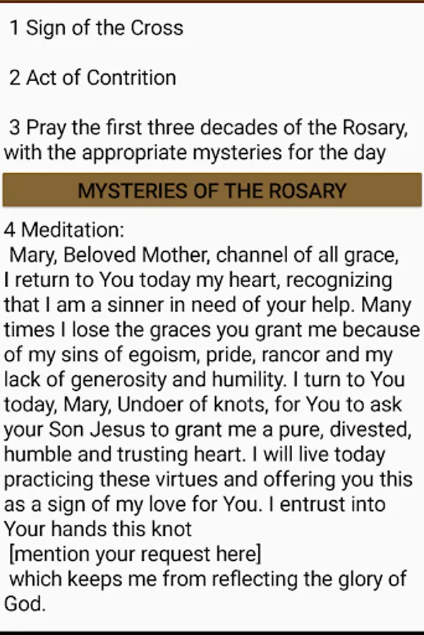 In popular devotion, this image was extended to the Blessed Virgin's intercession for us in Heaven. The knot is a good representation of the results of sin in our spiritual life: As we engage habitually in sin, it becomes harder and harder to return to virtue, just as a knot that is pulled tighter and tighter becomes harder to untie. God's grace, however, offered to us through the intercession of the Virgin Mary, can undo any knot and conquer any sin.
