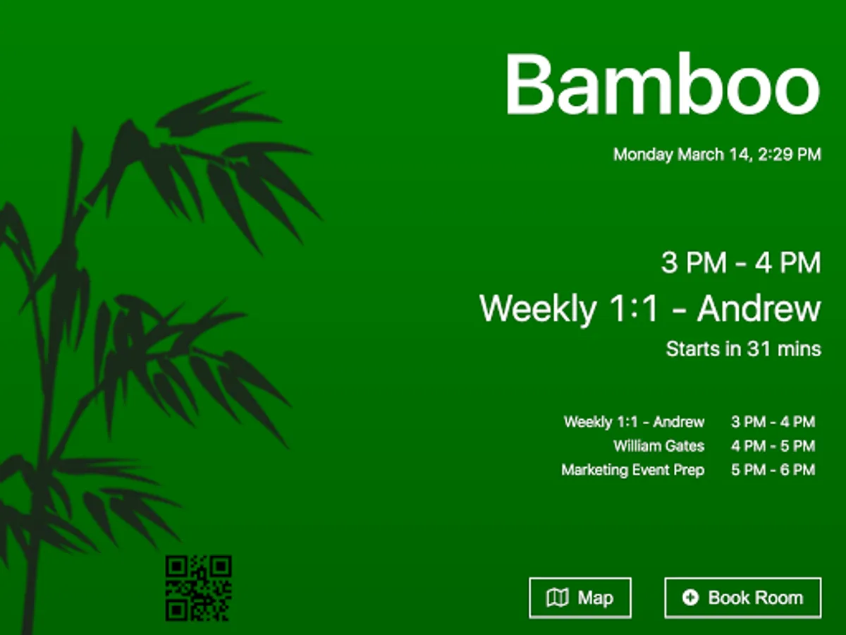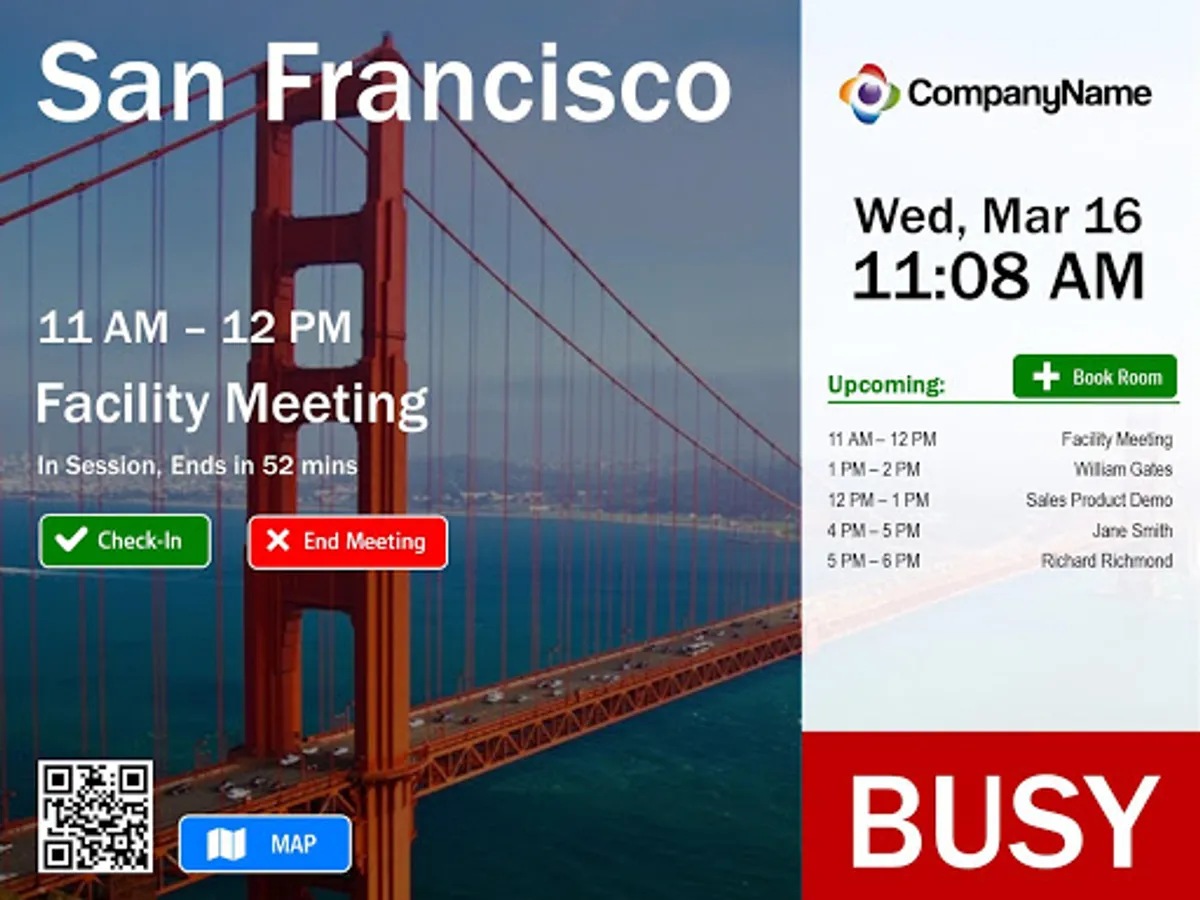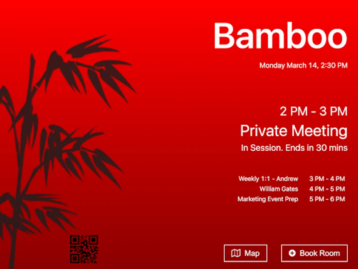 - User can book the room directly from the panel, as well as enforcing "check-in" to reduce no-shows.