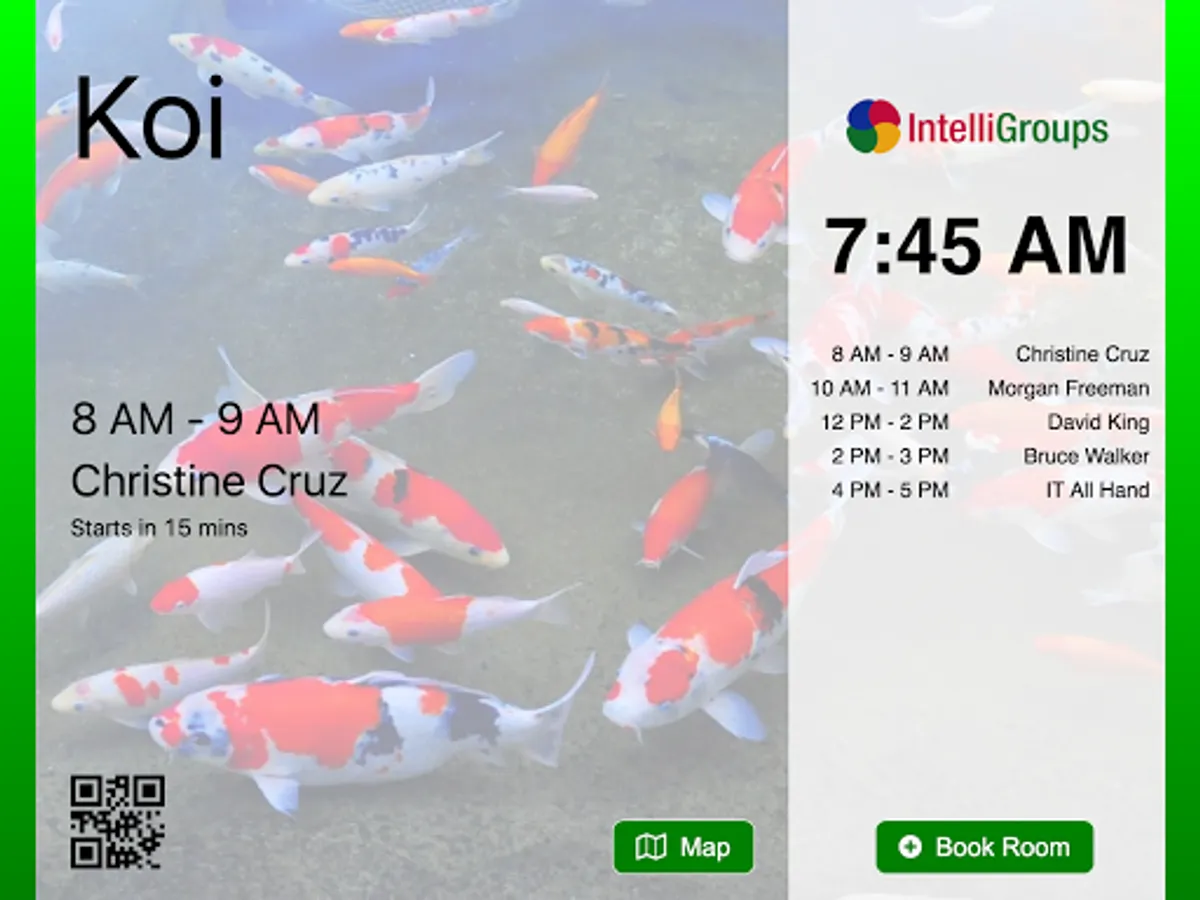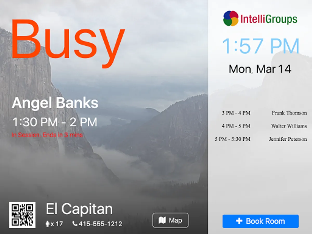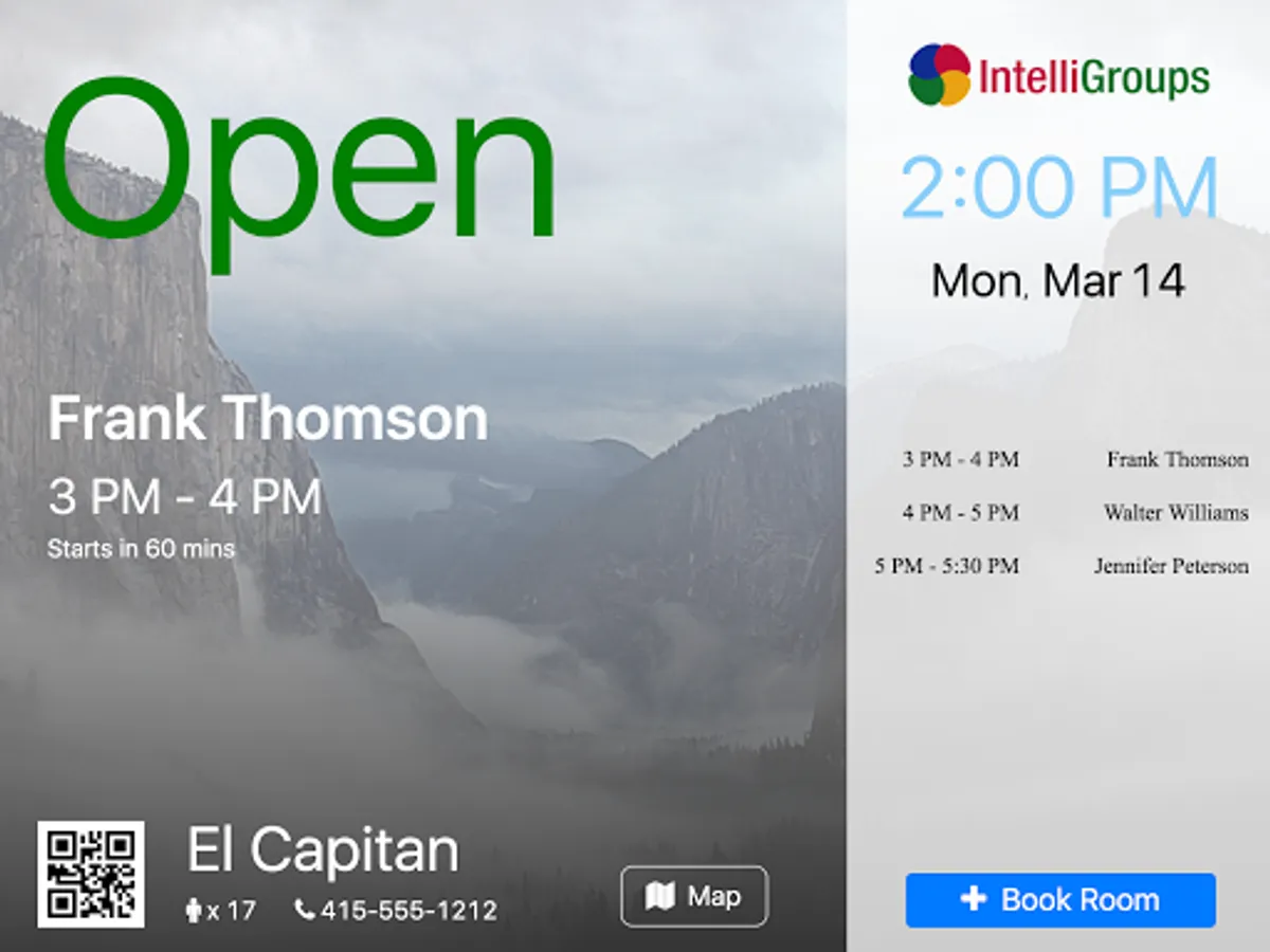 - User can book the room directly from the panel, as well as enforcing "check-in" to reduce no-shows.