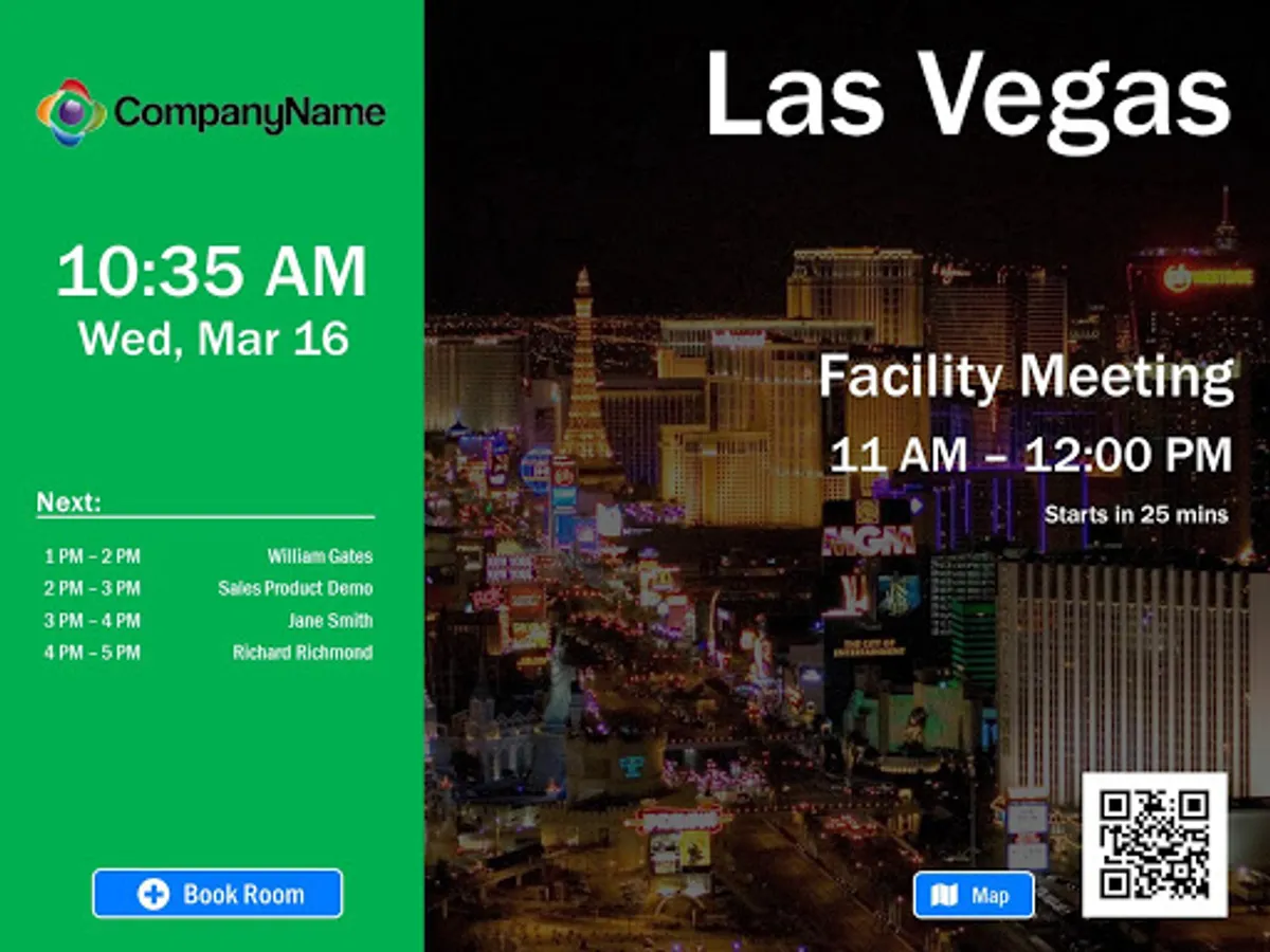 - Use this app on a tablet mounted outside of the conference room for a quick display of daily room events and reservations.
