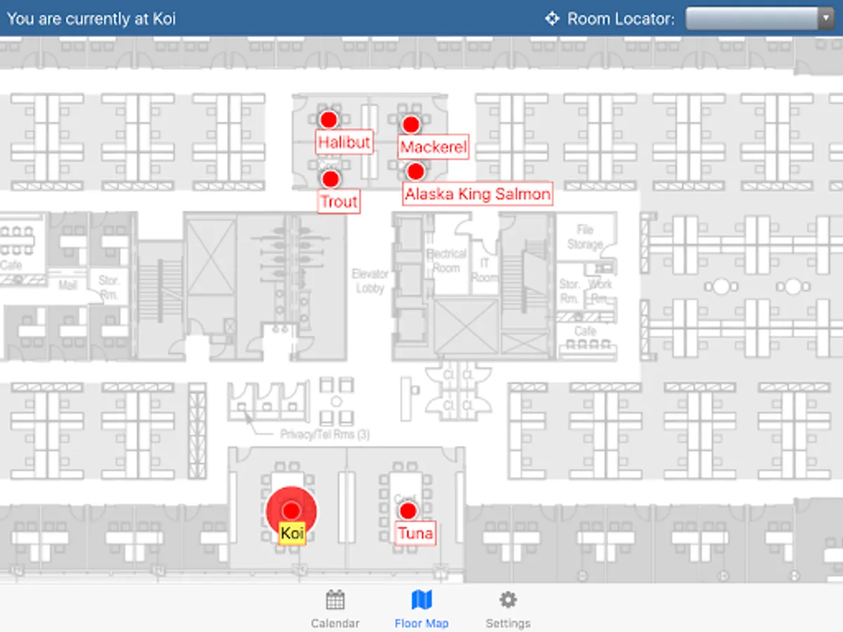- Also serves as kiosk, user can view the building map and orient themselves with the location of the current room.
