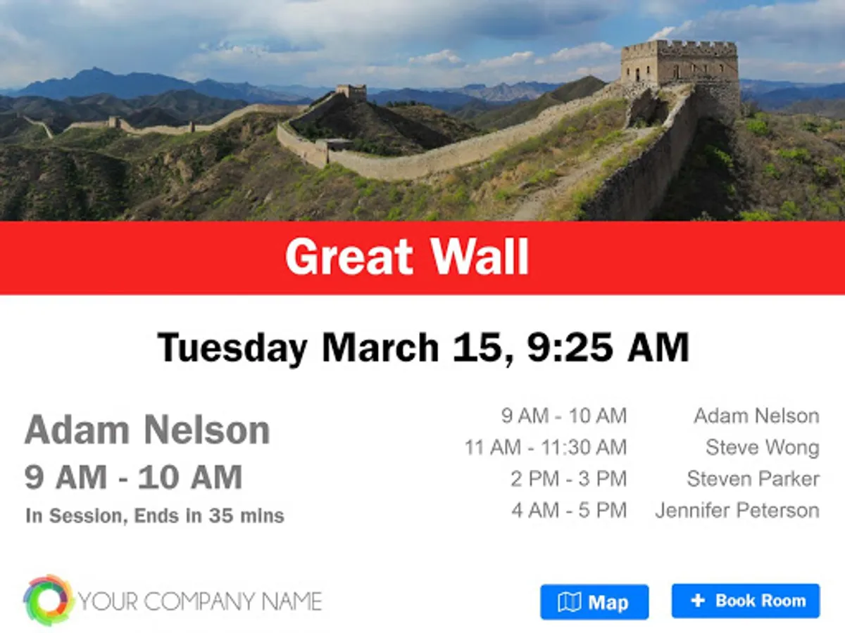 Room Display Unit (RDU) displays daily calendar events in beautiful layouts.