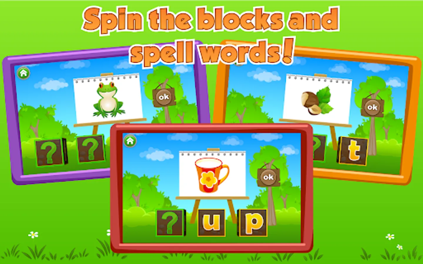 ★ Turn the Blocks: kids make words in a way that's fun by turning real-looking blocks with letters on each side until the word is spelled out.