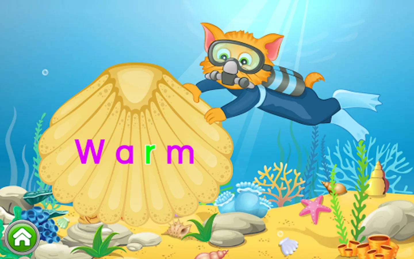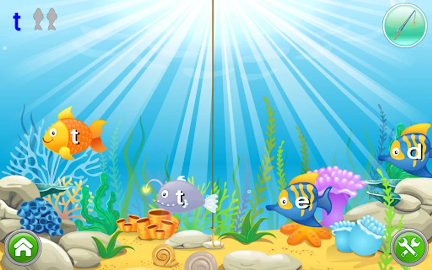 ✔ Ordering the ABC's: The child explores the deep sea to find letter-coins, and uses these to create a segment of four letters in a row within the alphabet.