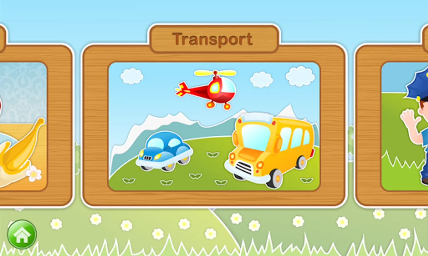 Kids Preschool Puzzle contains 10 categories: Animals, Food, Transport, Geometric Figures, Numbers, Letters, Sport, Occupations and Assorted - over a 100 puzzles in total.