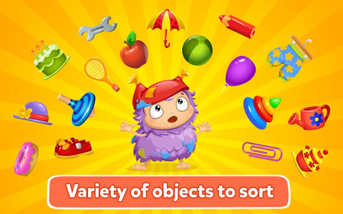 Your kids will love Kids Learn to Sort, Intellijoy's latest preschool curriculum app. Thrilling your kids as they learn preschool fundamentals, Intellijoy's apps are clean and intuitive. Your children will love playing its numerous activities all on their own - without any assistance. With the help of Sorty the Cute Monster, your child will learn to sort by: