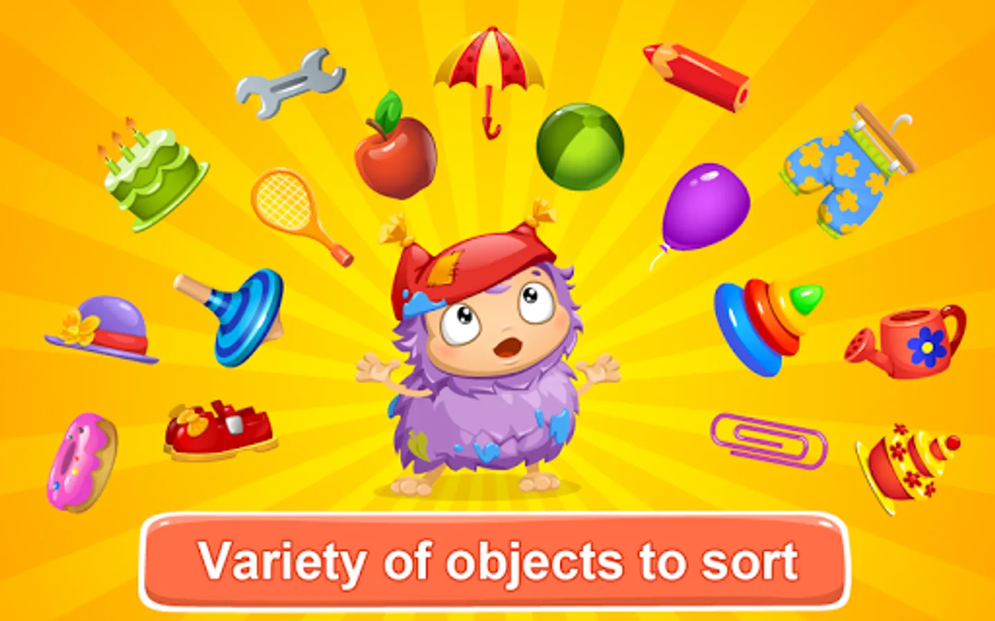 Your kids will love Kids Learn to Sort, Intellijoy's latest preschool curriculum app. Thrilling your kids as they learn preschool fundamentals, Intellijoy's apps are clean and intuitive. Your children will love playing its numerous activities all on their own - without any assistance. With the help of Sorty the Cute Monster, your child will learn to sort by: