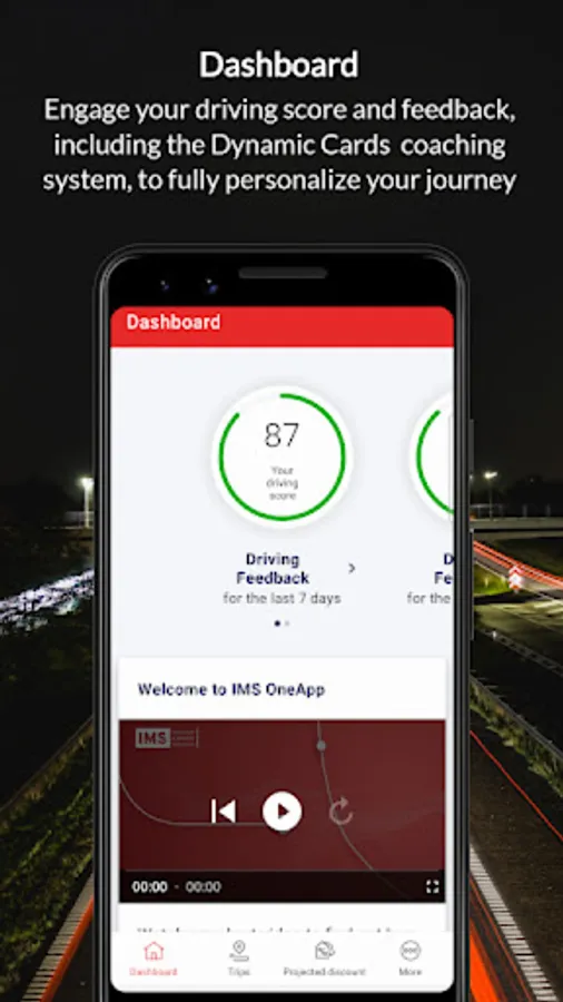 Download the best telematics app to improve driving behavior. The IMS One App trial app lets you experience how users can improve driving behavior, to be safer on the roads, with a fully personalized and engaging experience that will improve your book of business. A win-win situation for both your policyholders and your business.