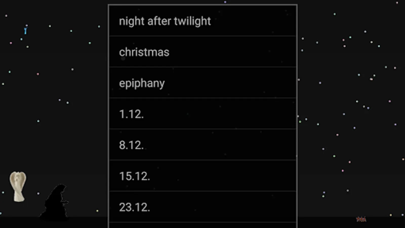 Shows the events of Christmas as they are told in the Bible by Matthew's and Luke's Gospels from the first Advent to the Epiphany, day by day and minute by time, following events in the real live as they happened 2019 years ago. Uses an atmospheric short winter day. Free. Does not show ads. Christmas gift for you and for your family.