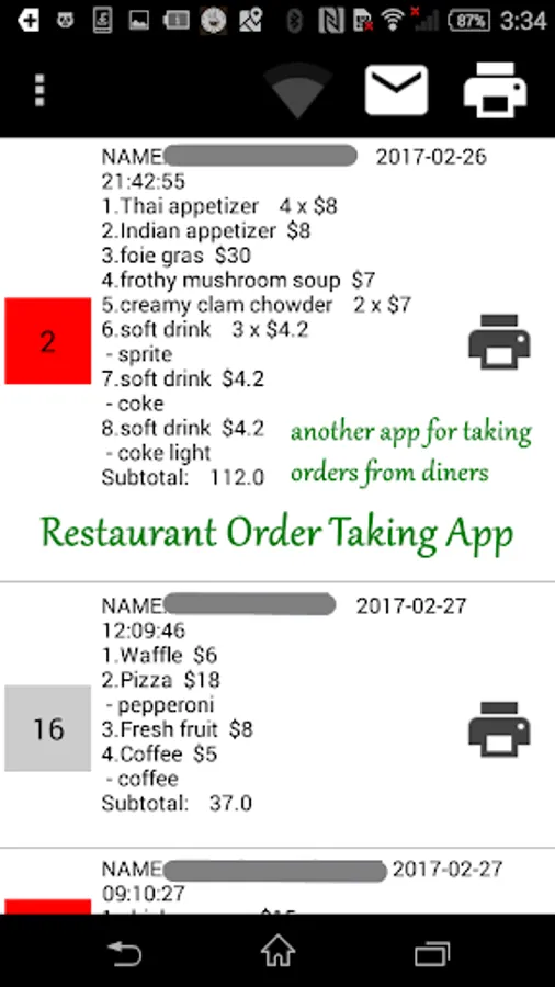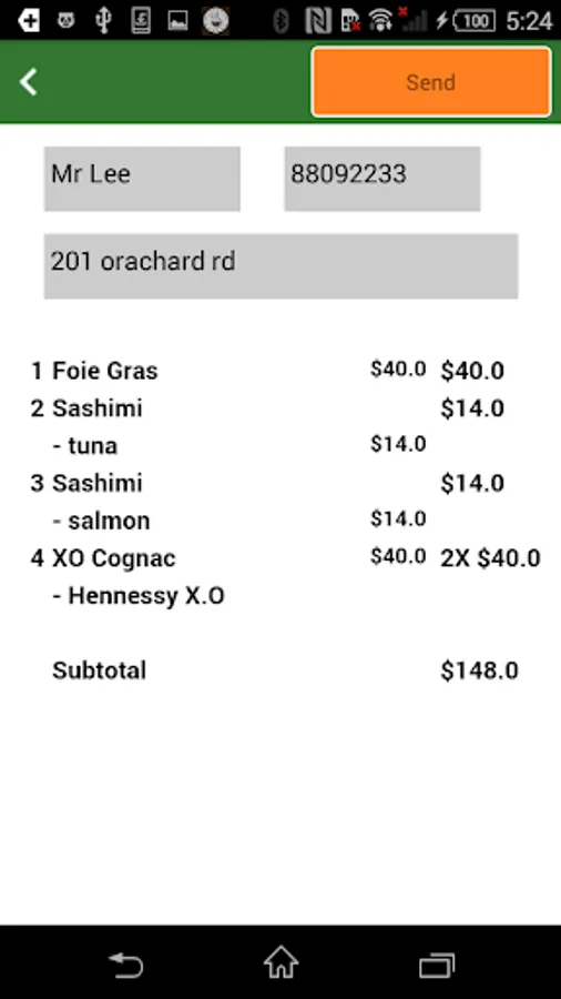 Customers place online orders on their mobile phones in the restaurant/office/at home.