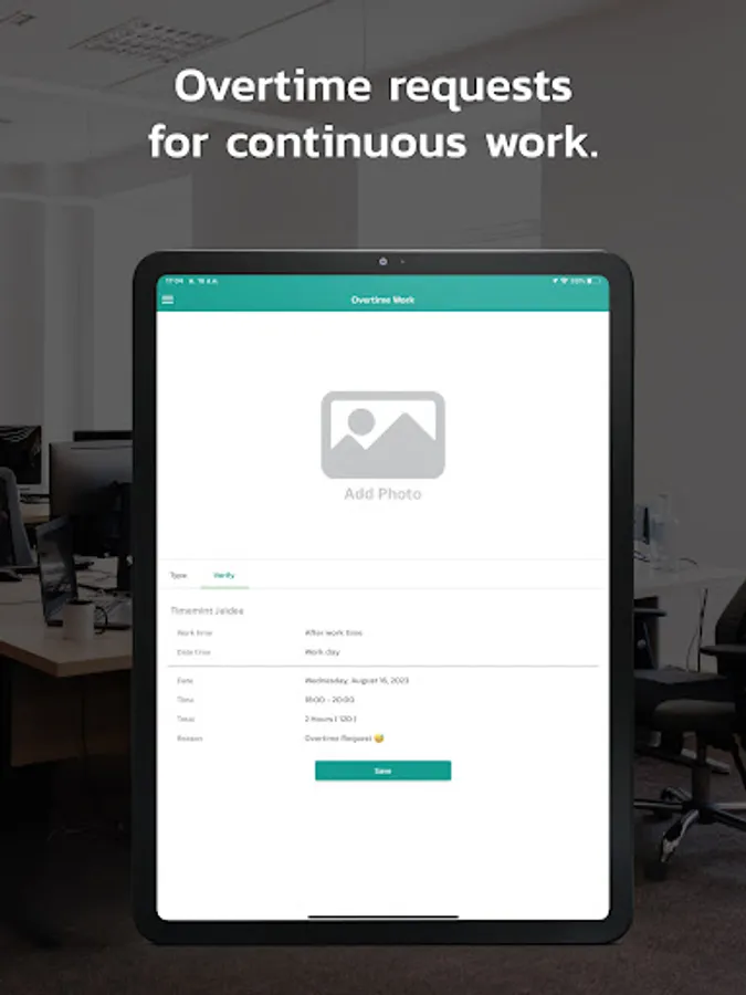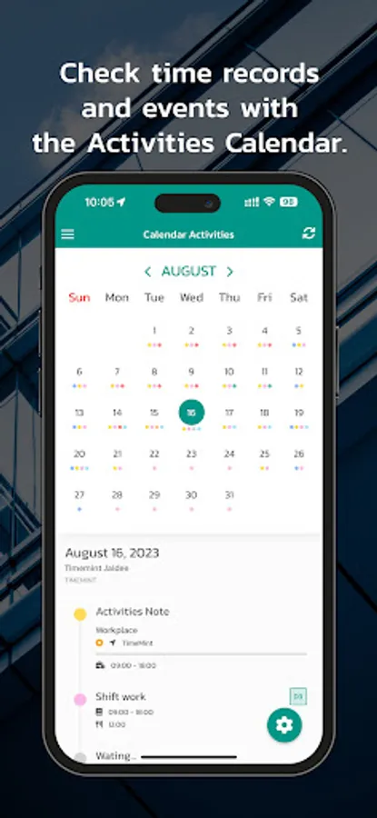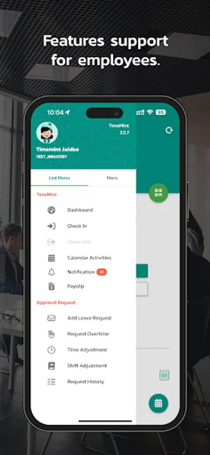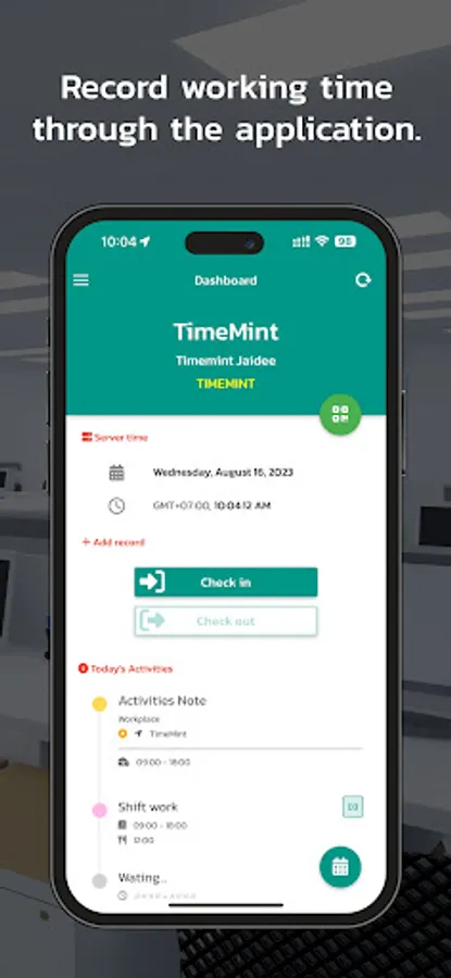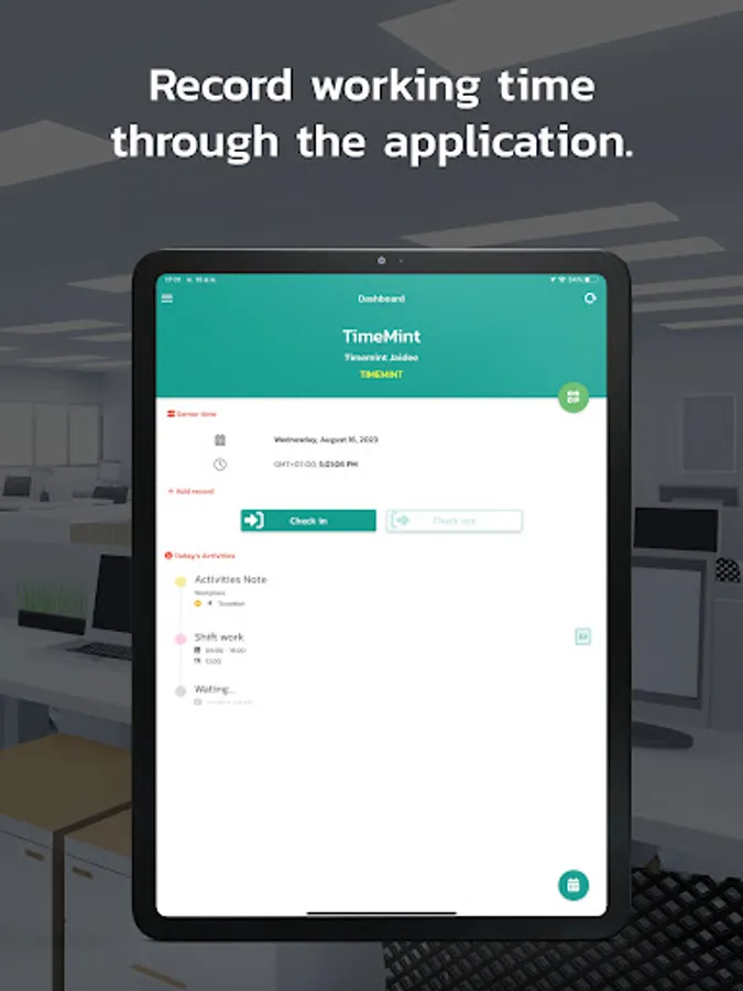 An application for employees to record check in - out time, and to manage absences, leave, and tardiness easily with a mobile app. Employees can check in - out on their mobile devices by themselves, without relying on other types of card punching systems. The mobile device must be authorized before it can be used to prevent employees from checking in and out for one another. Employees can submit leave requests or change their check in - out times immediately through their mobile phones, and managers can respond and confirm immediately through the TimeMint app.