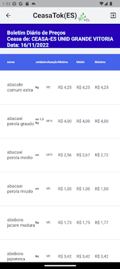 An approach to the main prices of the Fruits and Vegetables market in the region of Ceasa do Espirito Santo located in Greater Vitória and Northwest