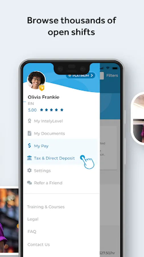 As an IntelyPro nurse, you’ll get the pay, freedom, and flexibility you want. Simply log into our easy-to-use nursing mobile app to browse and filter shifts and jobs that work for you. You can build a nursing schedule that’s perfectly tailored to your needs. You have the choice of per-diem nursing jobs in long-term care, nursing homes, assisted living, post-acute nursing, skilled nursing jobs, rehab, or hospice facilities.