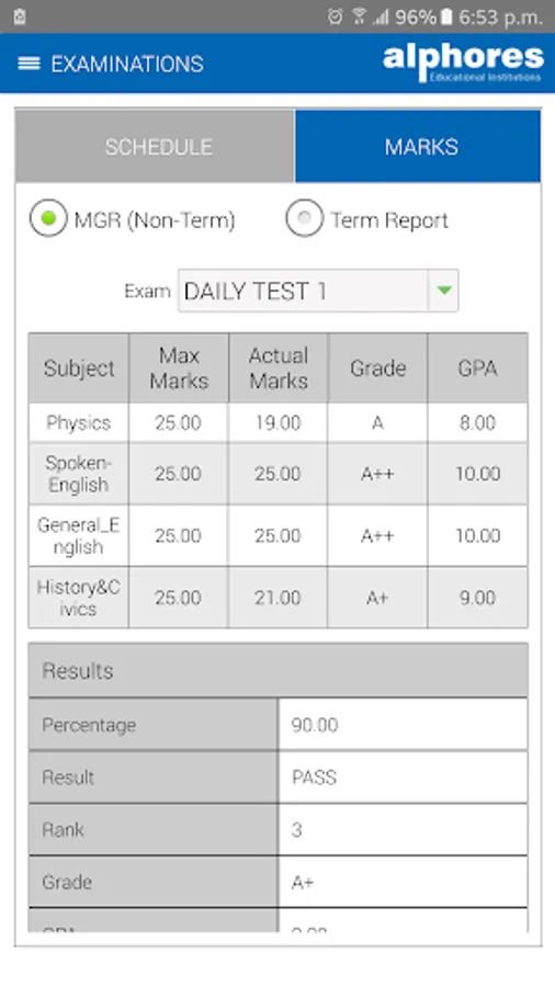 - exam results