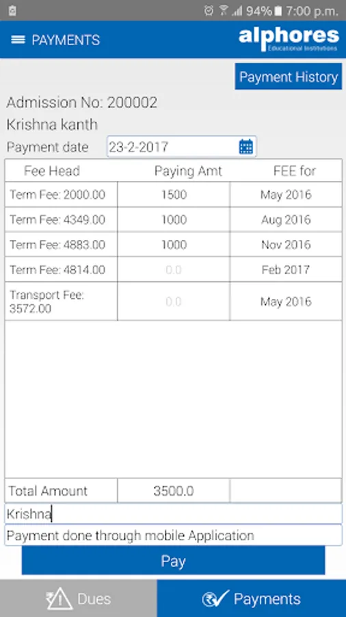 - fee details