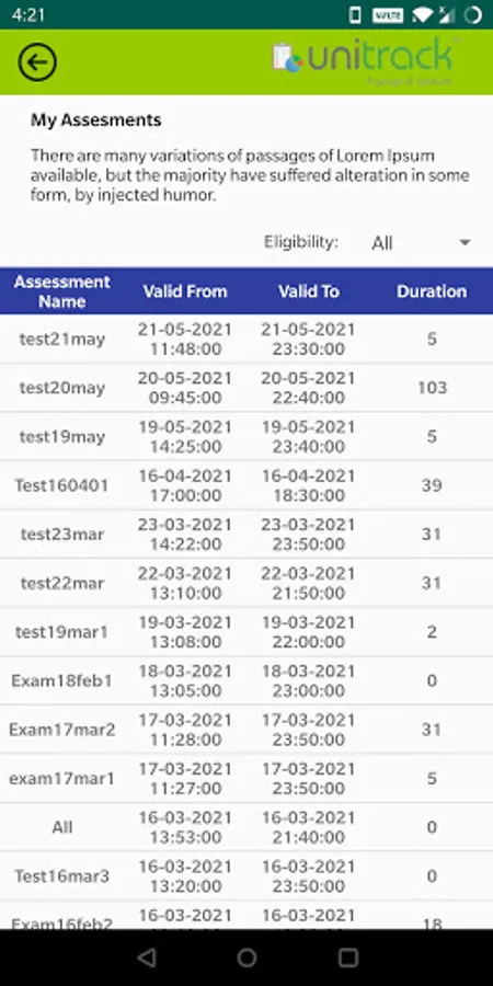 The main moto of this application is a registered student can login and take the Eligible tests available to him.