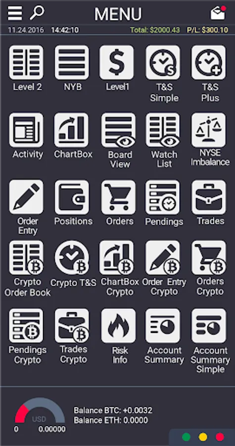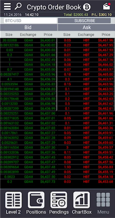 This Traders.One mobile Beta-version only for Equity markets with real-time access to NASDAQ/NYSE/AMEX/BATS/EDGX and Crypto OrderBook GDAX/BTFX/PLNX provided as Saas software service without any market-data re-distribution.