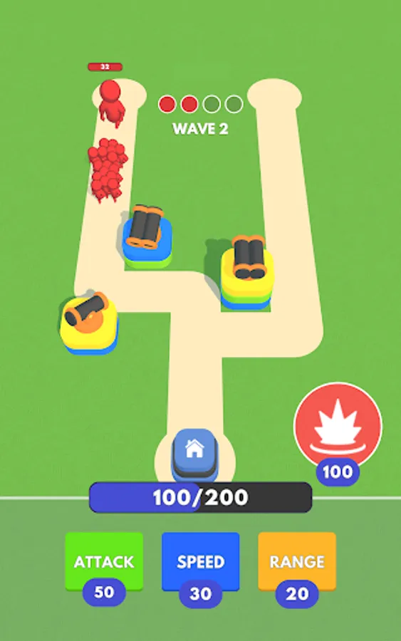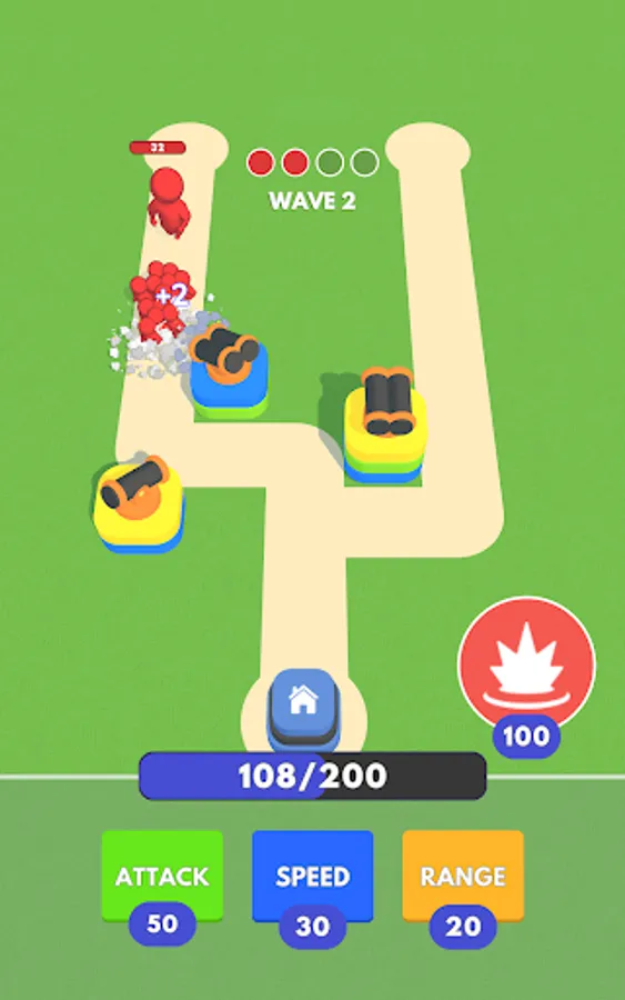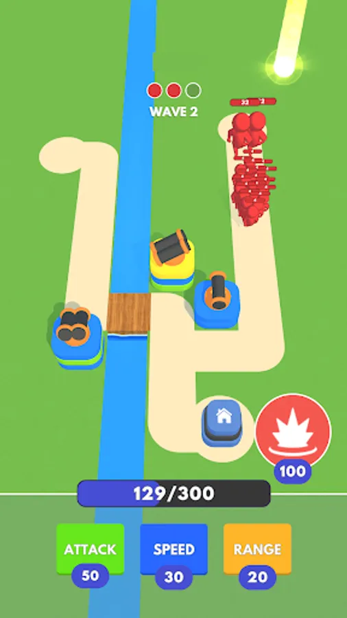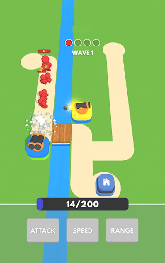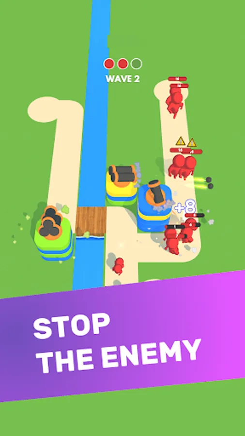 Use your building blocks to plant cannons, improve their power, speed and range for defending your precious base.