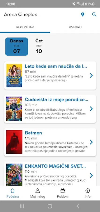 Arena Cineplex is presenting events, promotions, giveaways and notifications to the end user – cinema visitor.