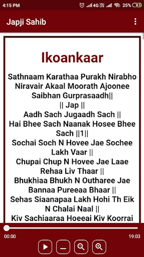 Japji Sahib consists of the Mool Mantra as the beginning followed by 38 hymns and a final Salok at the end of this composition. It is a famous and concise summary of Sikh philosophy. This app allows to read japji sahib path in three different language gurmukhi(punjabi), hindi and english. Purpose of this app is to let busy and mobile young generation reconnect with Sikhism and Gurubani by reading path on gadgets like mobile and tablets. It is a first path in nitnem.