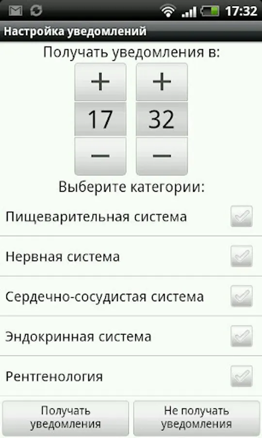 The main feature of the program is the availability of training mode, when the pre-set time, the user receives daily in the "curtain" notice new symptoms and syndromes of interest categories.