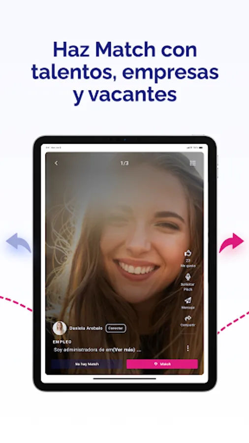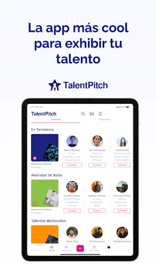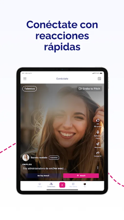 We present Talents, Companies and Vacancies with a TikTok-like video Pitch, allowing more than 1 million people to meet them and interact with them in a fun way and with a single click. We turn Match processes between Talent and Companies into an experience.