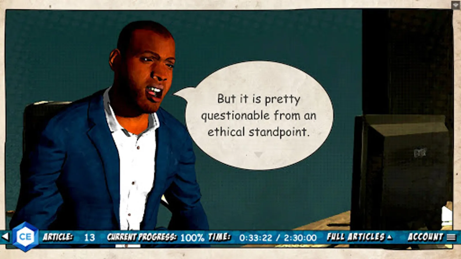 In addition to the overall story, The Ethics Adventure features:
