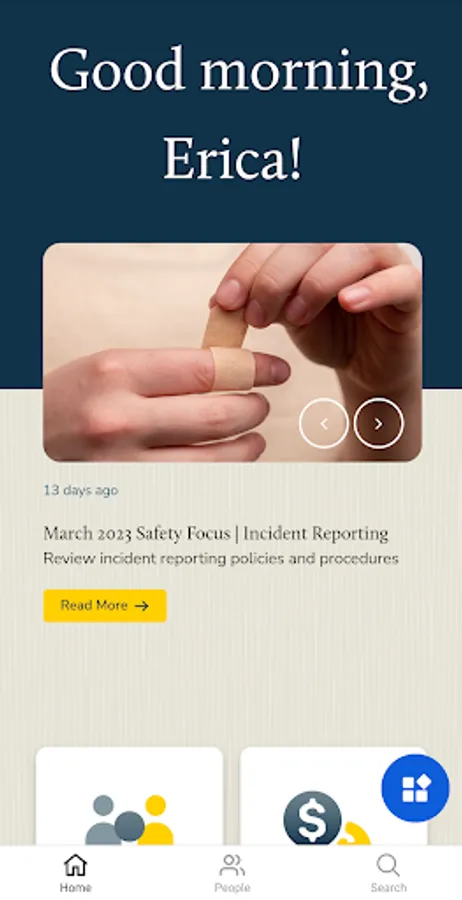 Your home page will regularly update with information relevant to your role, including new policies, recordings of company town halls, or demos on how to use tools for your position. Using this app, you also will be able to browse all of our process documentation, view details about departments, and or give a coworker a shout-out.