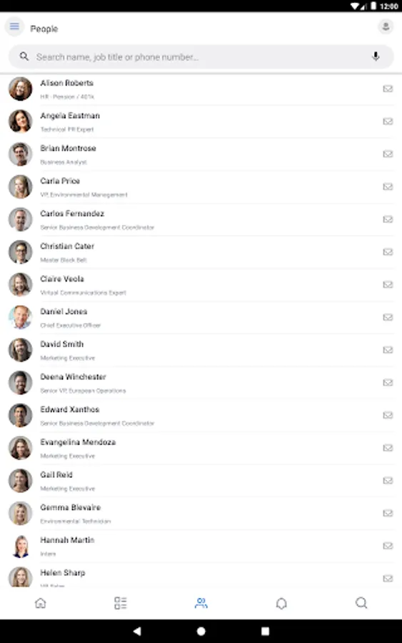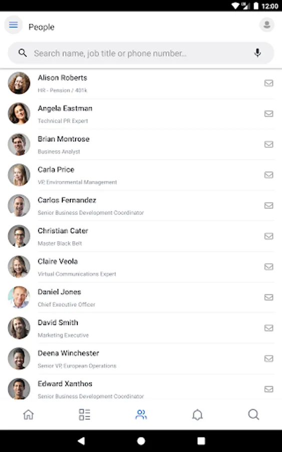 Using Interact Mobile’s Enterprise Search, you can instantly access all your vital business documents and storage: giving you the information you need, when you need it. You’ll also get access to your company People Directory on the move, with the ability to search colleagues and call or email directly from the app.