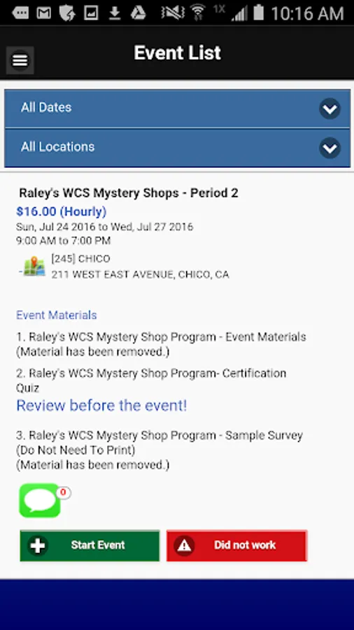 FieldLink Mobile App targets Sales Advisors and Mystery Shoppers who want to get up to date information about Interactions Marketing Events. Log in with your assigned credentials to Apply/Decline upcoming Event Opportunities, see the Events you are scheduled for, fill out your Post Event Recaps, and get directions to your next assignment.