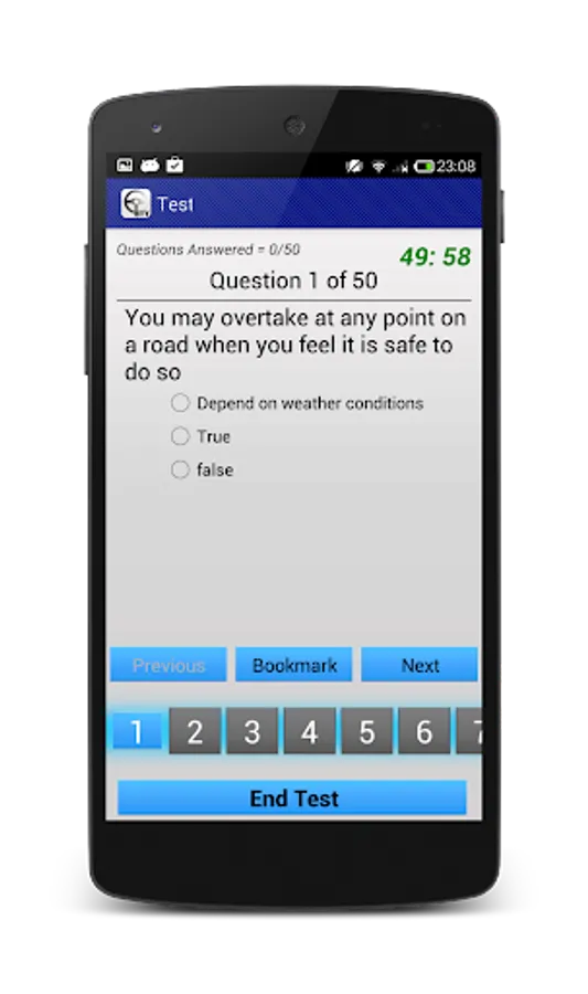 Test Mode - Take the mock test under real test conditions anytime anywhere. I.e. 50 random question to be completed within 50mins.