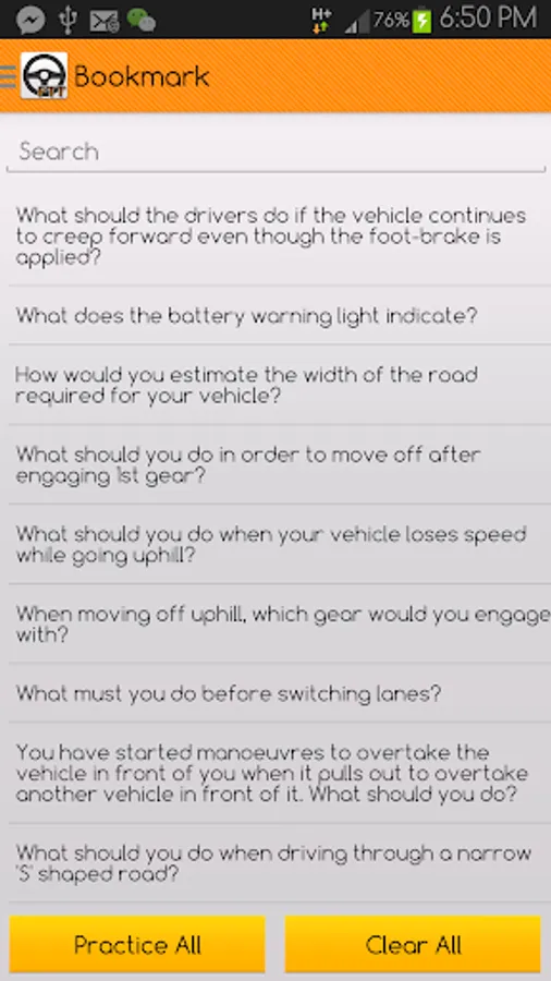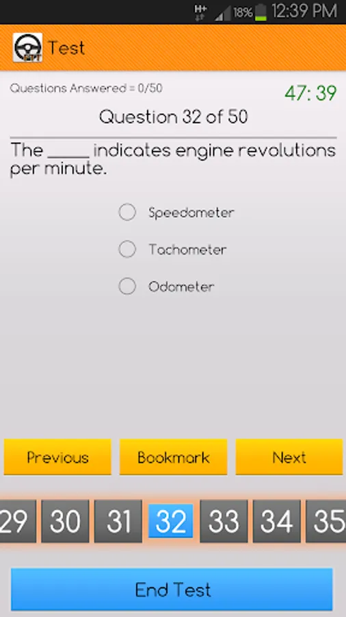 Test Mode - Take the mock test under real test conditions anytime anywhere. I.e. 50 random question to be completed within 50mins.