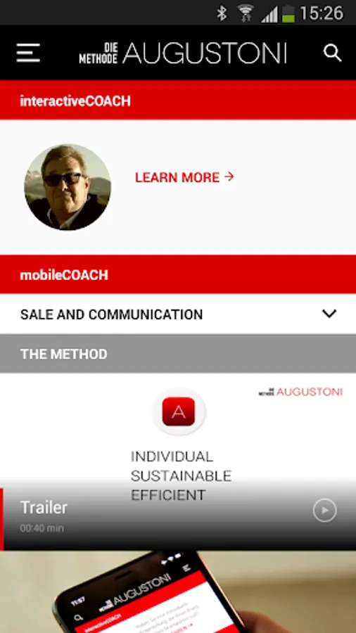 • Trough the interactiveCOACH, Bruno Augustoni personally answers your individual questions via video.