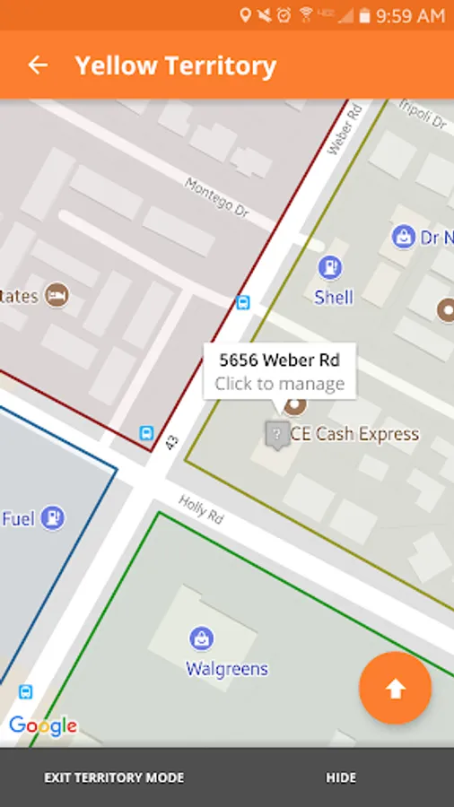 - Find any address - tap the button at the bottom-right corner of the map screen to enter an address to find, and Hail Recon will drop a marker at that address on the map.