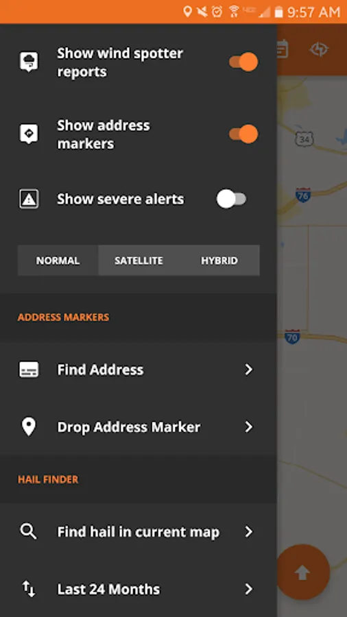 - Hail Finder allows you to find hail storms based on map location - just zoom to any specific location and tap “Find Hail in Current Map”.