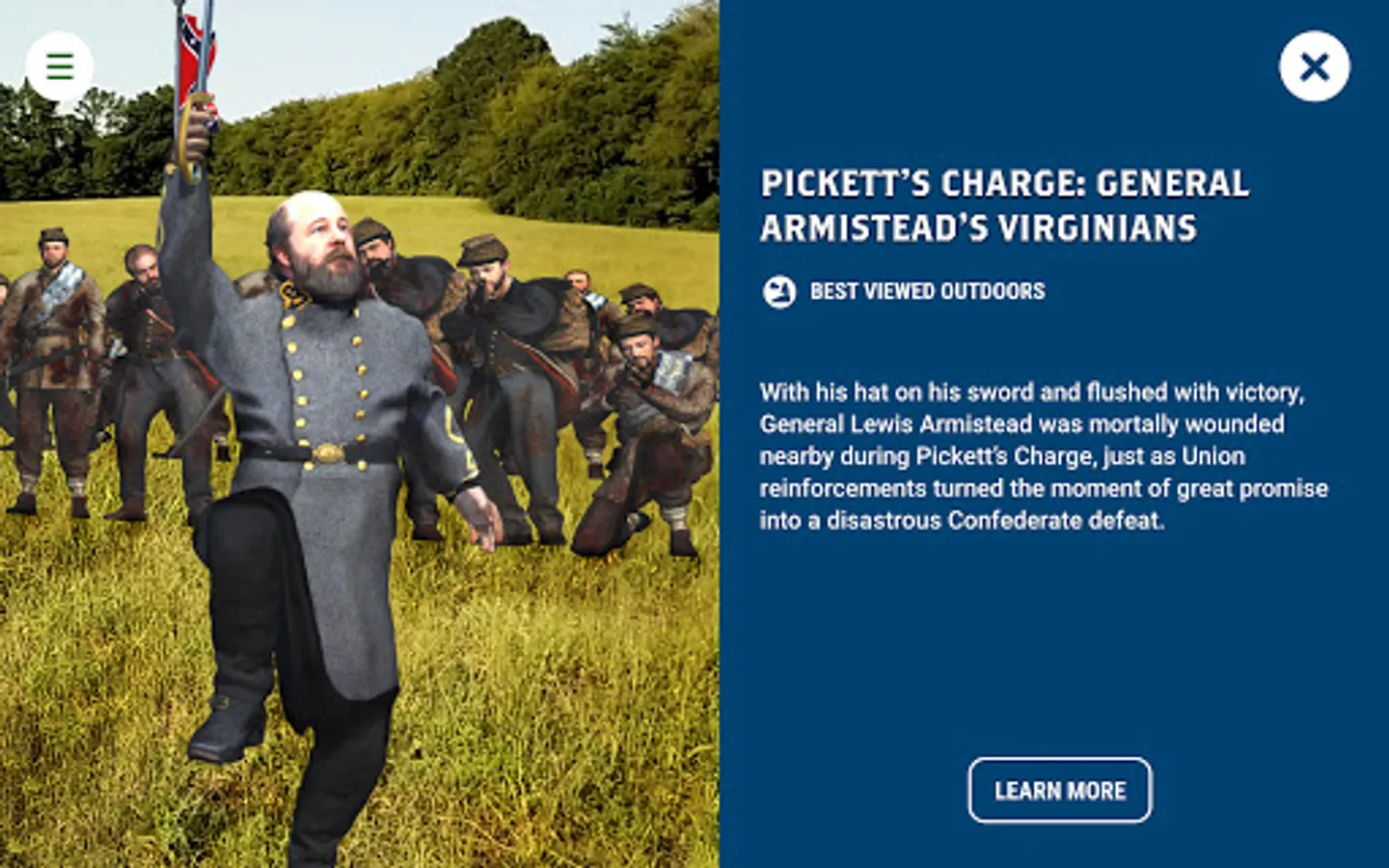 Step onto the battlefields of Gettysburg and witness history as it happened through virtual recreations and augmented reality technology. Interact with soldiers and civilians who experienced what it was like to be at the Civil War’s bloodiest battle. Be there when President Lincoln gives his famous Gettysburg Address.